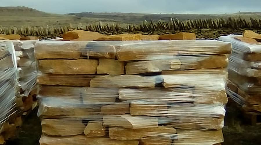 Extracción y venta de piedra irregular caliza amarilla característica del Maestrazgo.