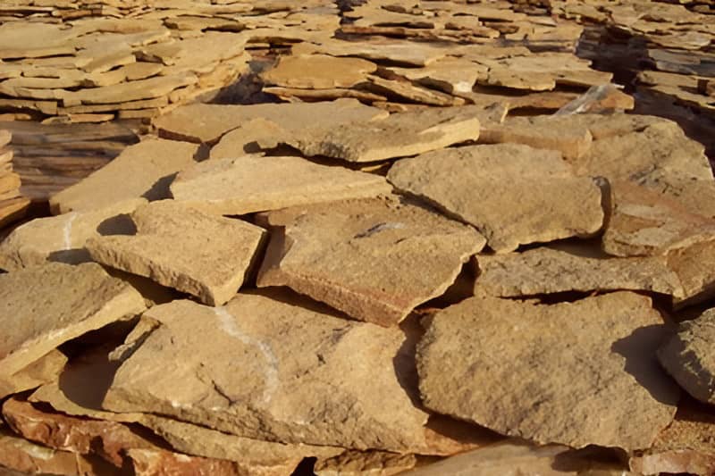 Piedra irregular con un grosor entre 4 y 7 centímetros. Ideal para suelos y muros.